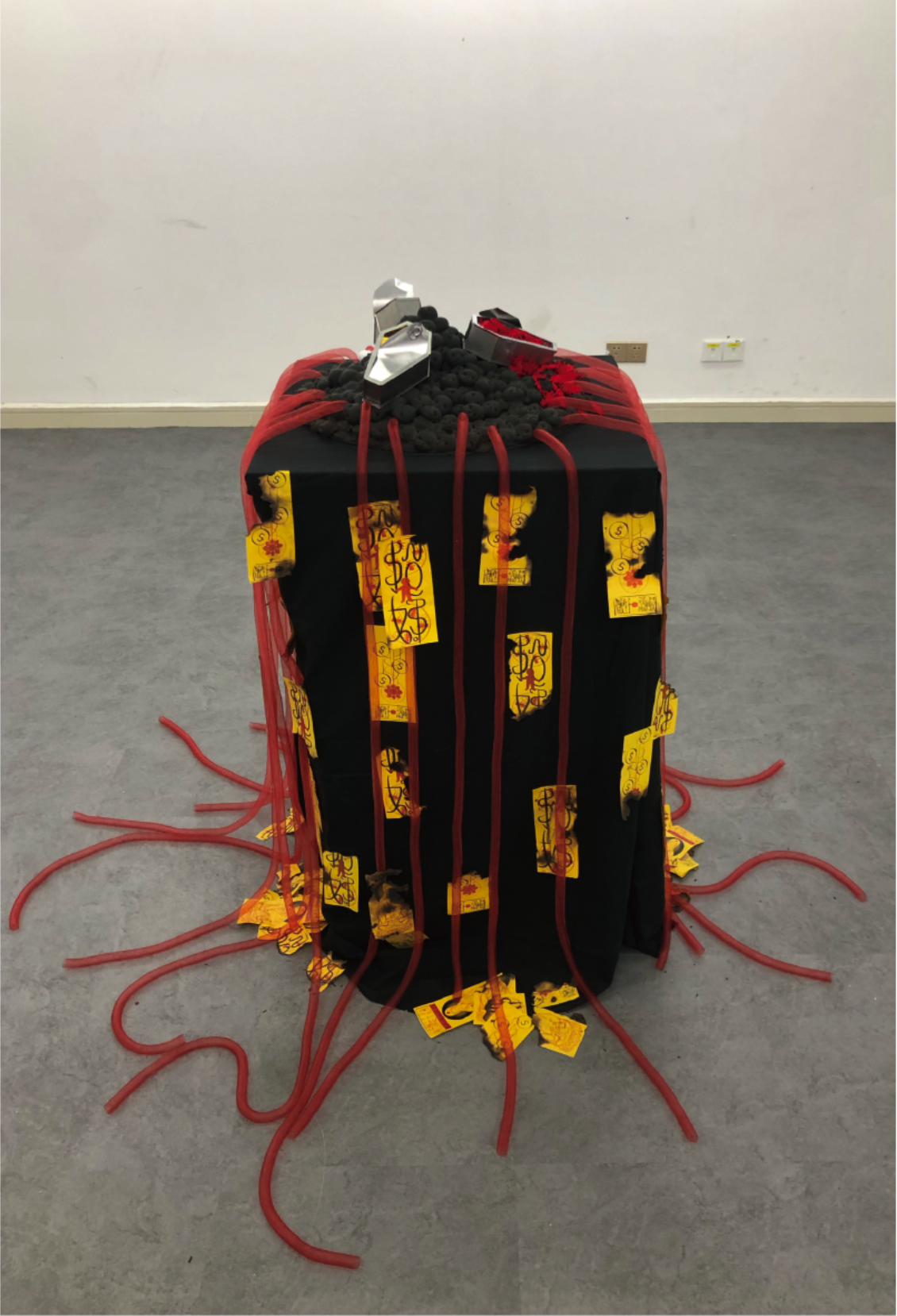 The problem of son preference ‘重男轻女’ always exists in this society. The three themes of the installation are 'Gender Changing Pill',' Birth To Boys Talisman', and' Baby Girl Tower', these three objects reflect the ridiculous things that people do to have boys.