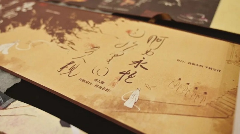 A specially bound collection of illustrations tells the following story: In the dark sky of the ancient world, the main character is the stone that fills the sky, has infinite life, wants to search for eternity. No light at night. When it gets dark, no one dares to go out, and birds and animals hide in their nests. He rescues a bird from the darkness and accidentally illuminates it into a spirit, so the bird and he search for eternity together.