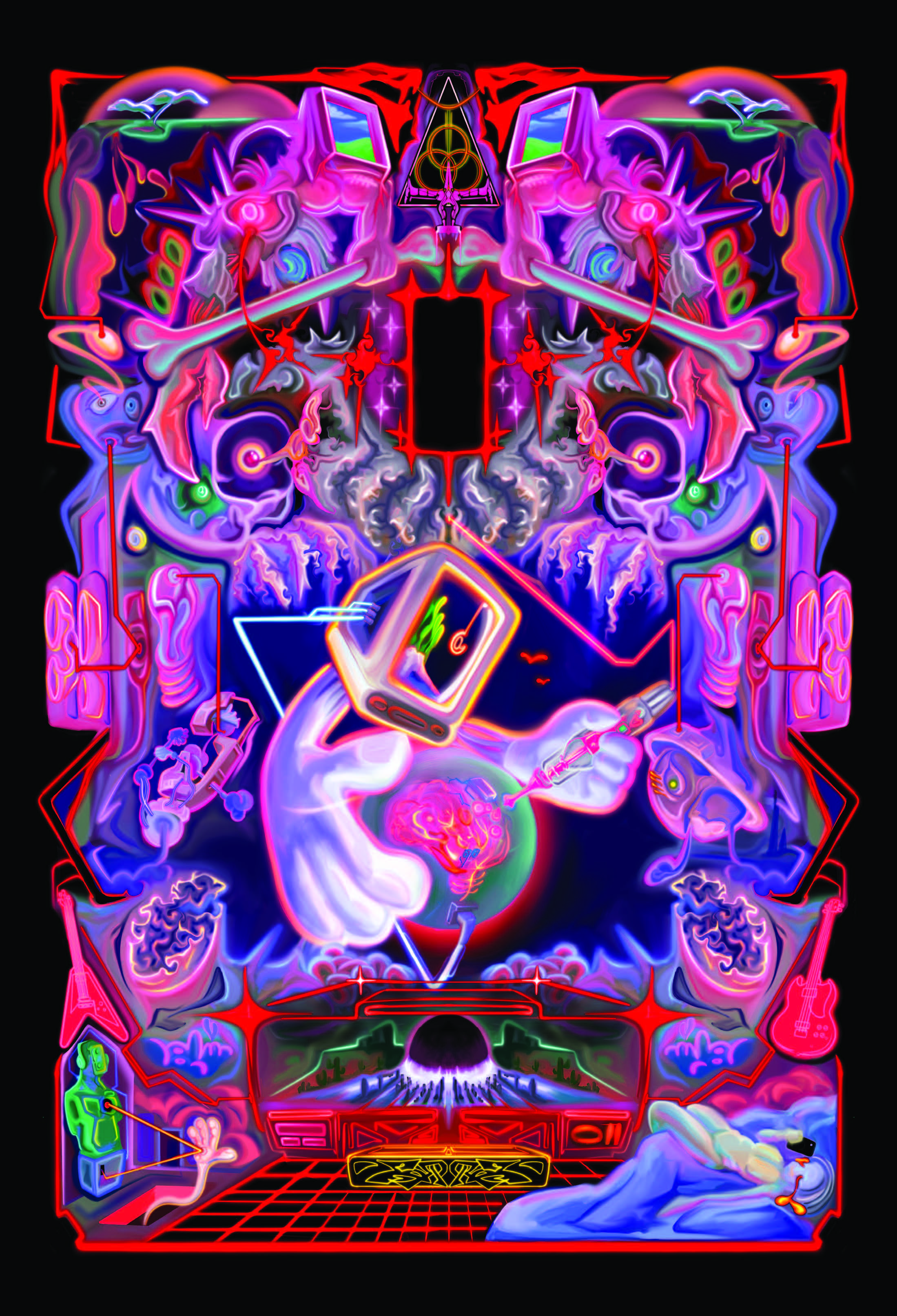A digital painting that connects absurdity, humans, machines, the universe, the internet, desires, subconsciousness, limited space, the past, present, and future. It is the result of confronting the existentialist dilemma brought about by absurd life and digital technology.