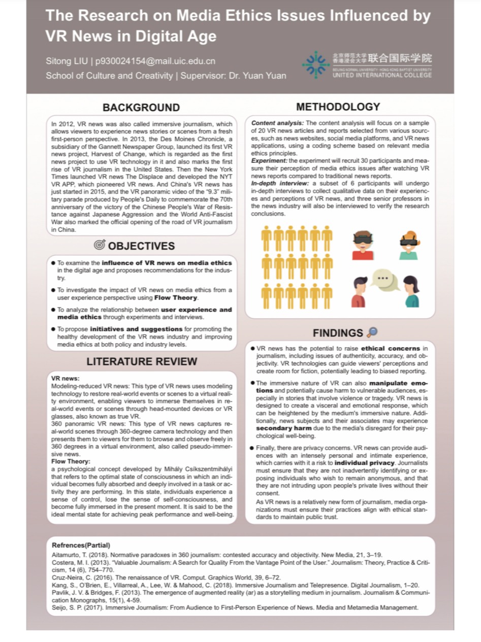 In recent years, the integration of traditional media and emerging media is a major and profound change in the media field, and VR journalism is gradually becoming a new opportunity for traditional media transformation. However, as an emerging narrative medium, the development of VR technology in the field of journalism is still immature, and the ethical issues it raises still need to be explored. Based on the characteristics of VR news, this paper systematically studies its ethical issues from the perspective of Flow theory and user experience based on theoretical studies at home and abroad. Experiments and in-depth interviews are also conducted to analyse the ethical dilemmas caused by the immersive and interactive nature of VR news in conjunction with existing cases. The issues of accuracy and authenticity, ethics and objectivity, and privacy violation that VR news is facing are derived through image differentiation understanding, producer's emotional manipulation, and other aspects.