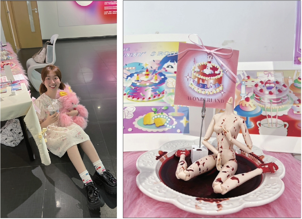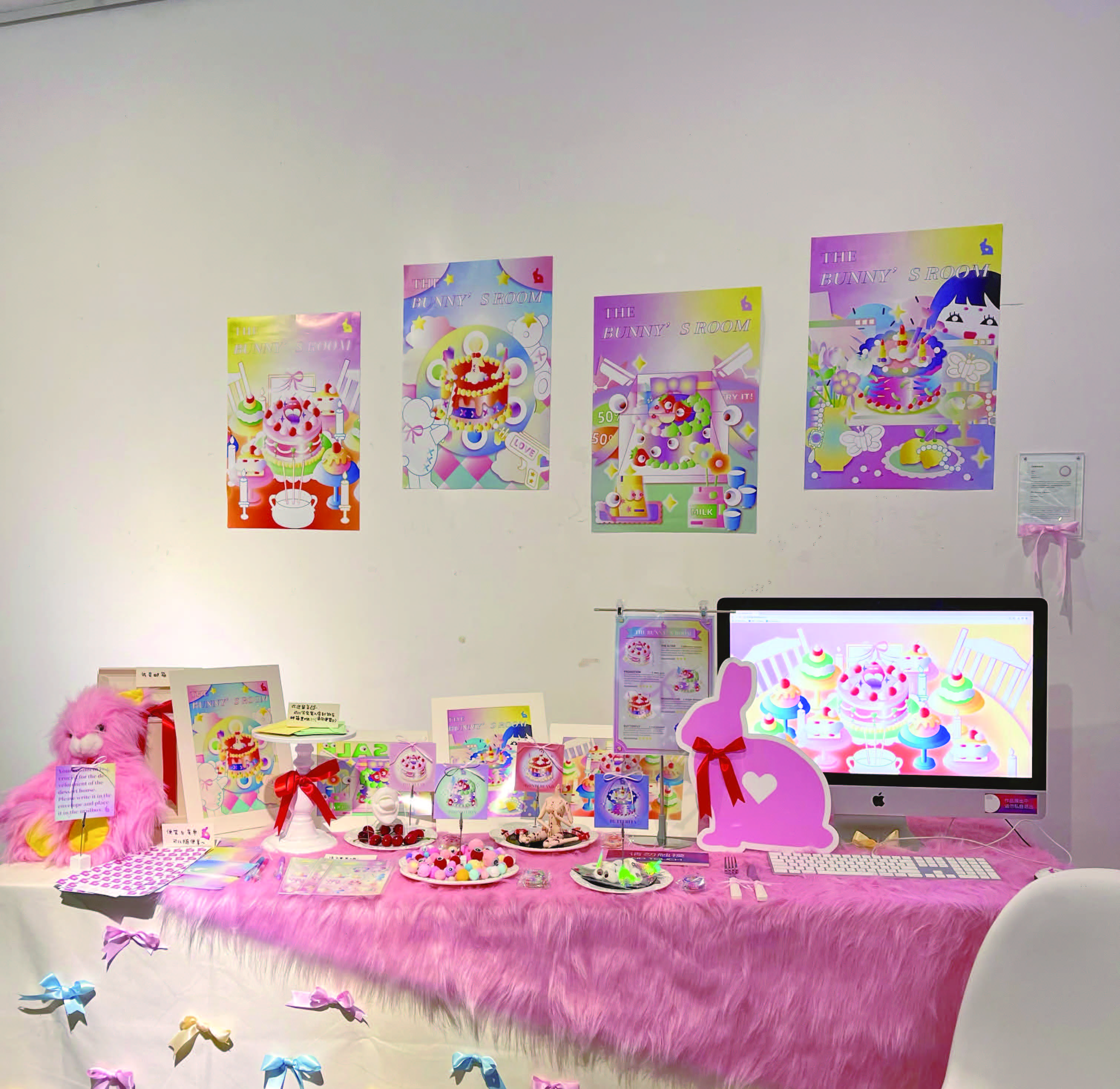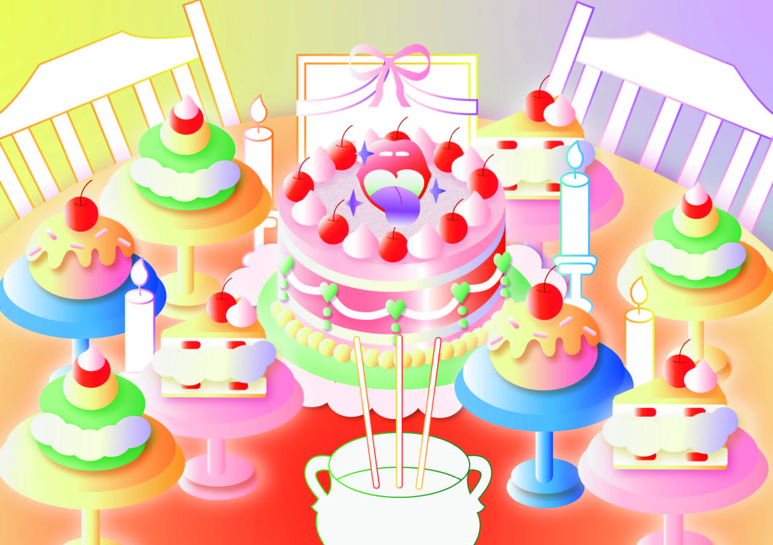 This is an interactive artwork about male gaze. By comparing women to various cakes in different environ-ments, including the mourning hall, shopping center, amusement park, and dressing table, the audience is endowed with a dominant power compared to patriarchal society. The use of a large number of gradient colors symbolizes the absurdity of reality, while the use of flat elements metaphorically represents reality. In short, this work aims to expose and satirize the negative impact of male gaze from a feminist perspective.