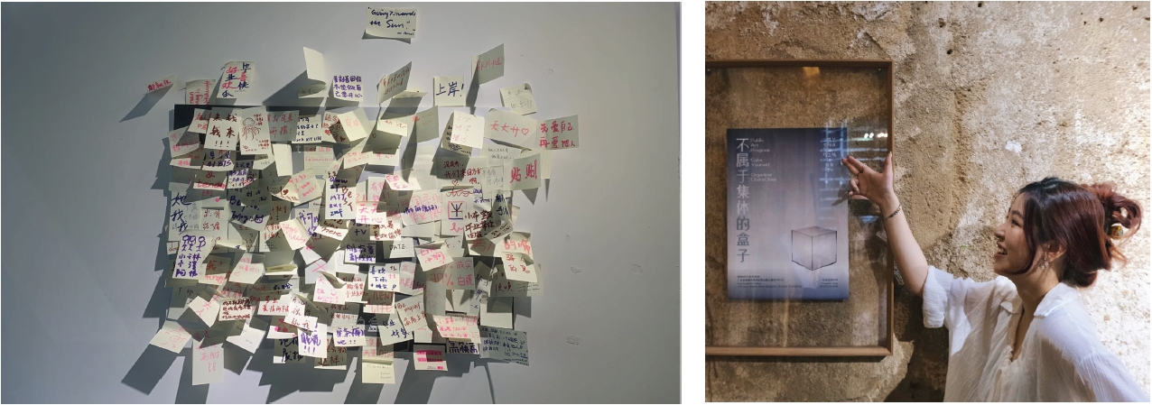 This is an attempt of a public project.In the Art Space Xuyuhuanbian, in March and Apri, the whole project comprises three sections: public art works, Paintings exhibition and experimental video exhibition.I invited every participants who came to the art space to join in. All I have for them are empty boxes and a few different materials, but each person creates a box with a distinct personality and style.At the end of the projdect, I built a wall of all these boxes. This strange brick wall is not only a collection of ideas, but also a microcosm of the human ecology of this small community. When we ware shaping it, it's also showed a reflection of this place, which reveals the interplay and interaction among the exhibition, art space and the audience.As the initiator of the whole project, I hope that we can try to communicate in different ways, and also hope that through this interesting way, we can narrow the distance between art, art space, community and the public, so that art can be quietly integrated into everyone's life.