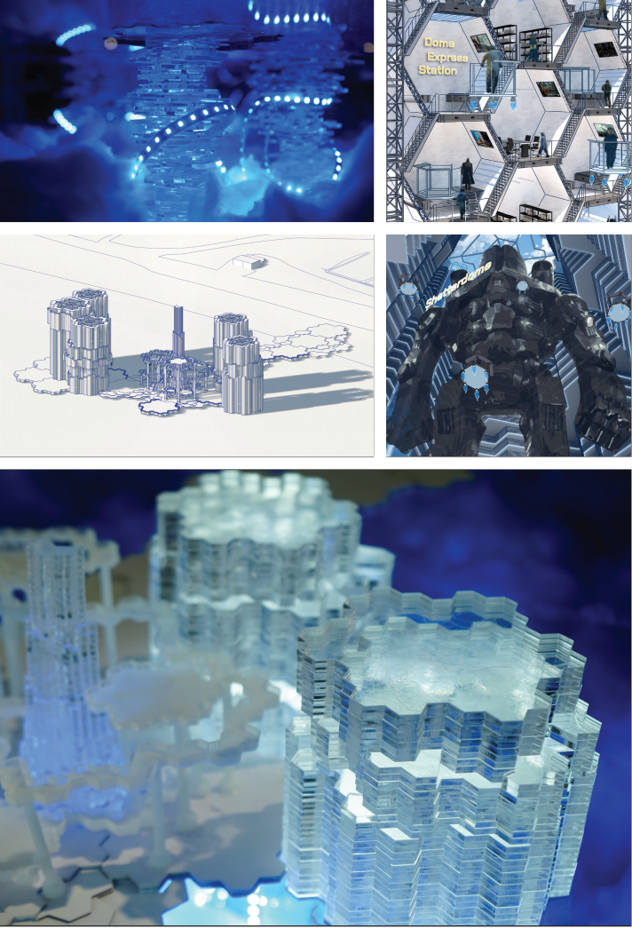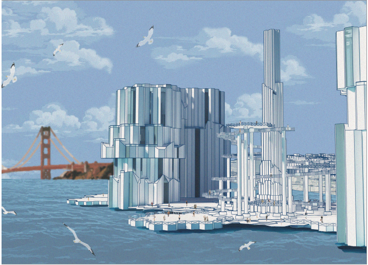 The Jaeger base in the movie Pacifific Rim is fragile, thus San Francisco was selected as the new location because of its technology development. While helping the unpopular scenic spots attract tourists, the base breaks the limitations of audiences and becomes another landmark building. Dome express increases the efficiency of staff mobility, and the hanging platform provides visitors with a high-altitude viewing space, while the combination of waterside terrace and bridge creates an exhibition space. By rebuilding Jaeger Base, it addresses the drawbacks and limitations of the film's setting and brings the dreams of Pacifific Rim fans to life.