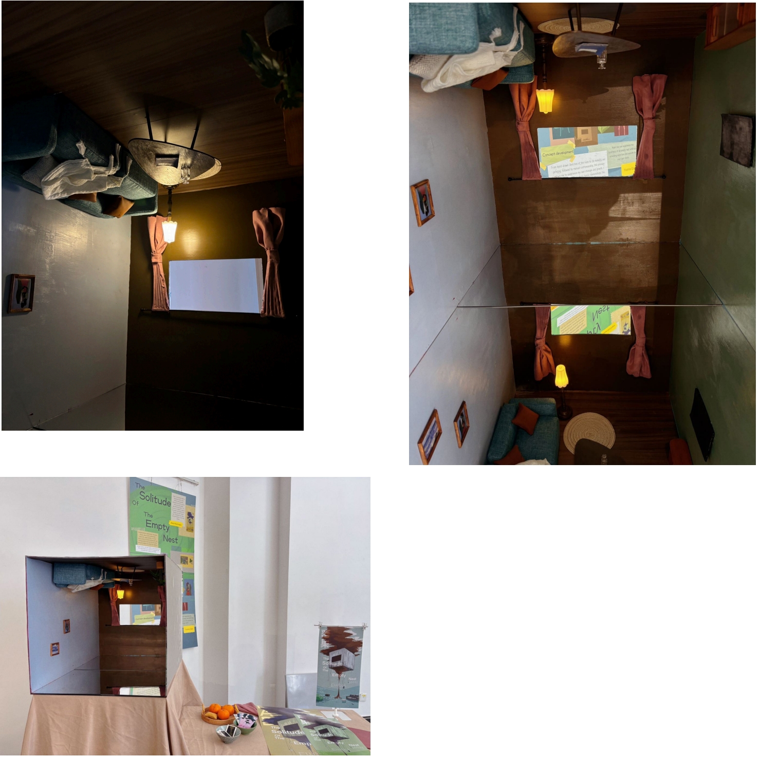 When you step into this room, you become a part of the artwork. Through the mirror, you merge with the reflections cast by the room, becoming a part of this empty nest. Experience those emotions, let us reconsider the emotions and significance of family to us.