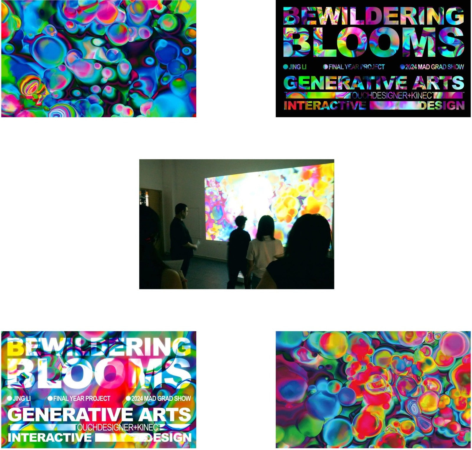 Bai Juyi's (poet in Tang Dynasty) description of the spring scenery of West Lake " 乱花渐欲迷人眼 " (A riot of blossoms, gradually blurring of eyes), takes on a new meaning in the information age. Like blooming flowers, overwhelming amounts of information constantly bombard our sight and attention, leaving us dazzled and confused. This work presents an interactive projection installation that immerses the audience in a virtual sea of generative flowers. Viewers can interact with the visual content through seeing themselves drowning in the digital flower sea, simulating the experience of struggling and losing oneself in the deluge of information.