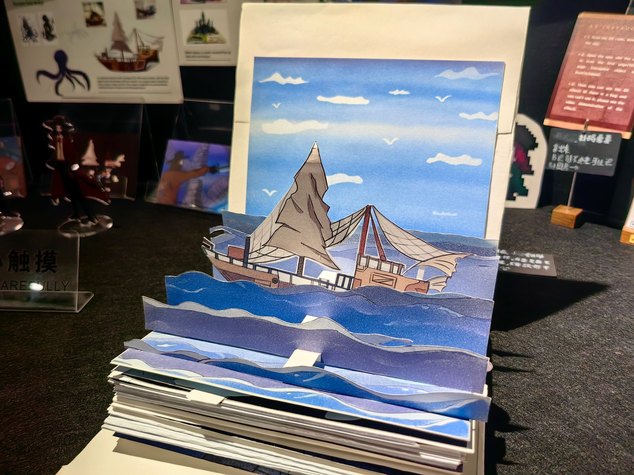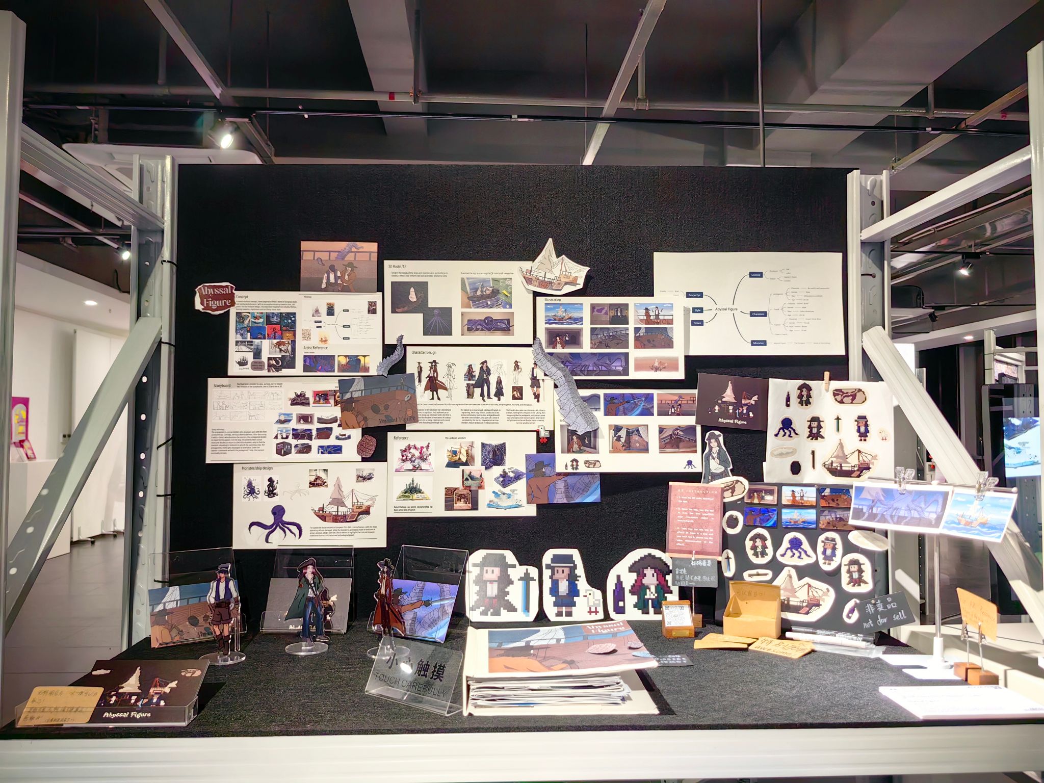 'Abyssal Figure' is an unidentified form hidden in the memories of the deep sea. Bycombining a pop-up book with AR technology, it reveals the remnants of the worldthat have been eroded by the abyssal figure during thej ourney of a dilapidatecpirate ship, and lets the viewer fall into an unknown deep-sea journey along with thestory.