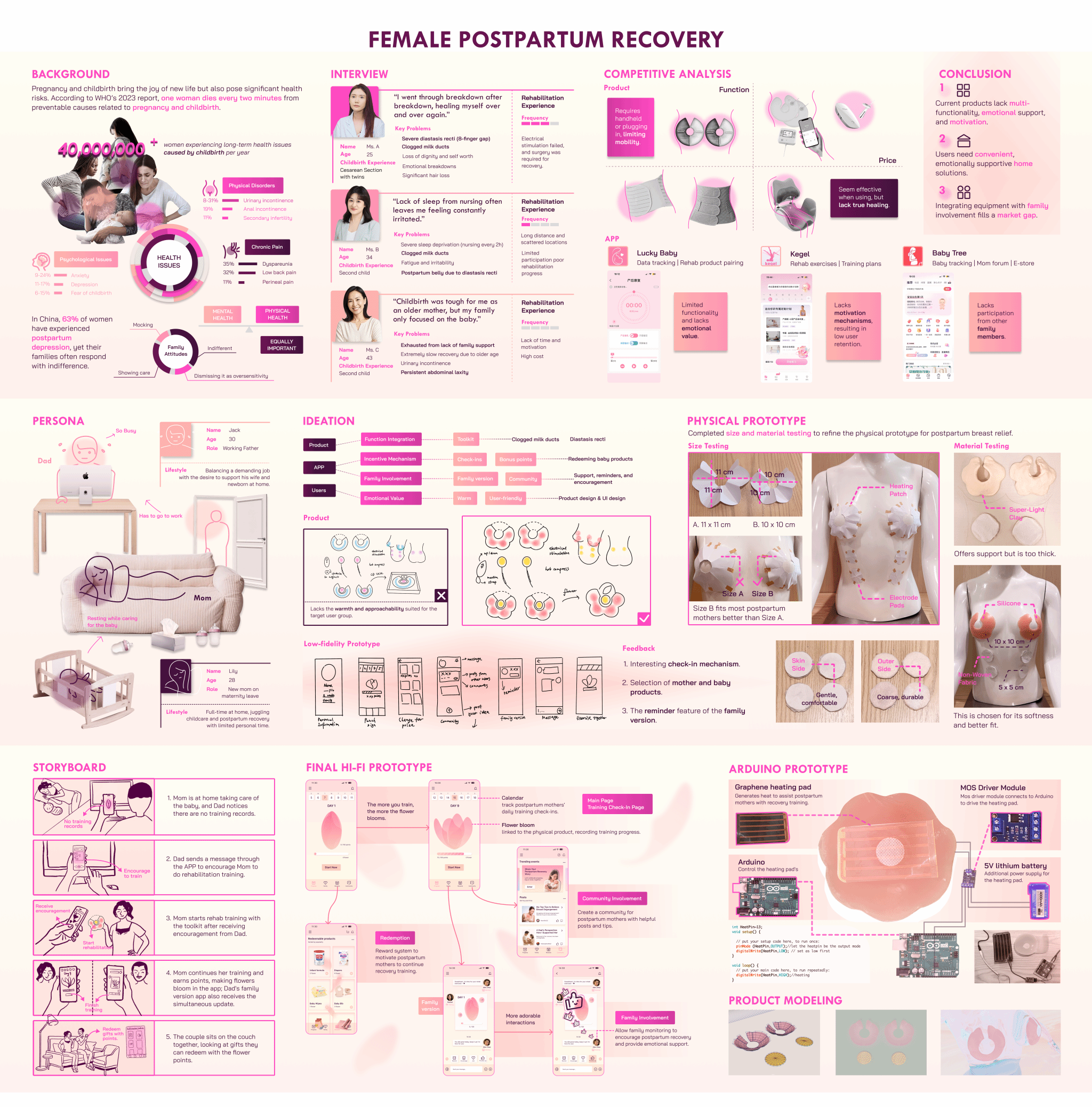 Postpartum recovery is essential, yet many mothers lack effective tools and ongoing support, This project balances physical and emotional needs through atoolkit and app, creating a user-centred recovery experience.
