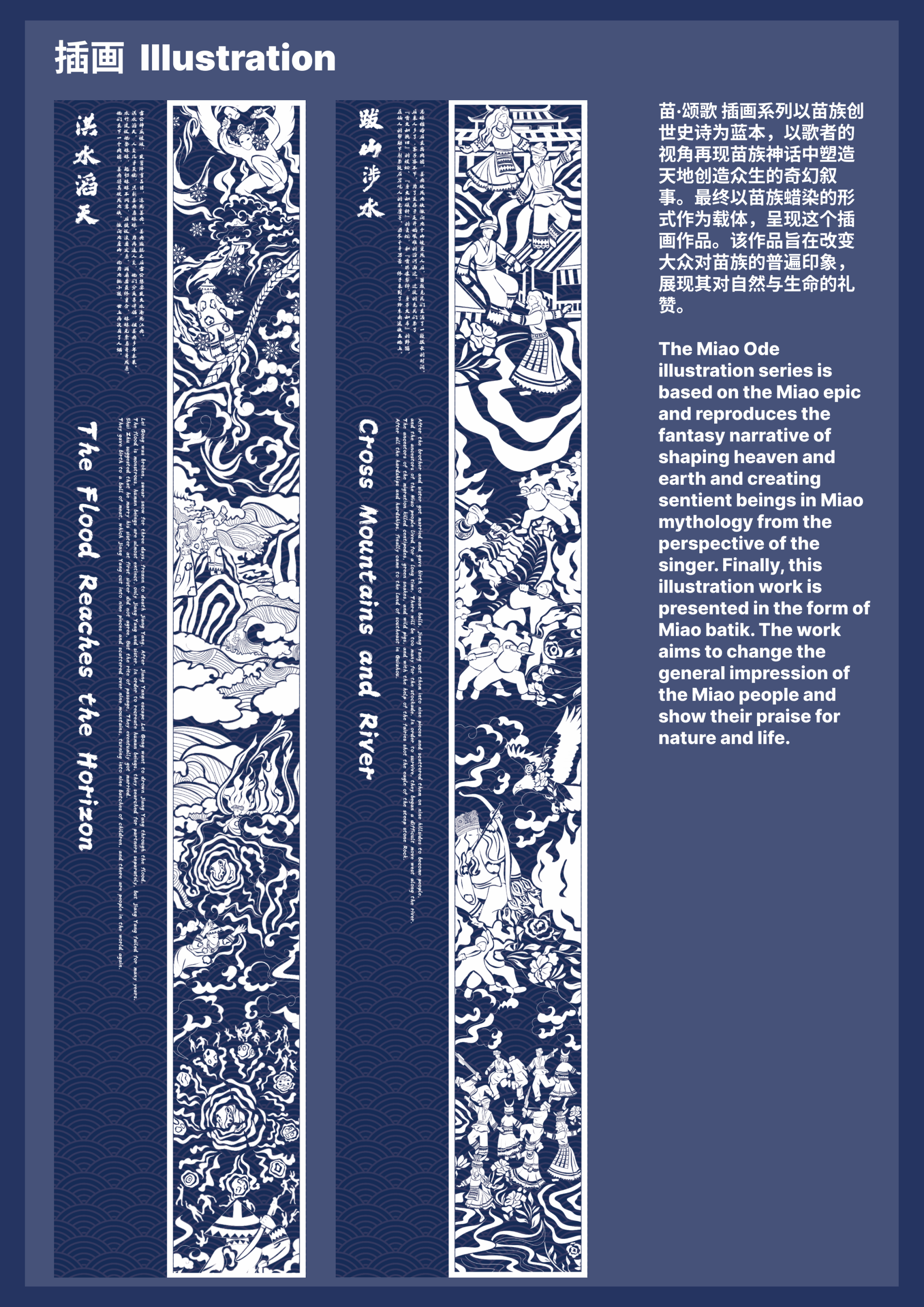 The illustration series of Ode to Miao is based on the epic of Miao nationality, and reproduces the fantasy narrative of Create the earth and creating sentient beings in Miao mythology from the perspective of the singer. The work aims to change the general impression of the Miao people and show their praise for nature and life.