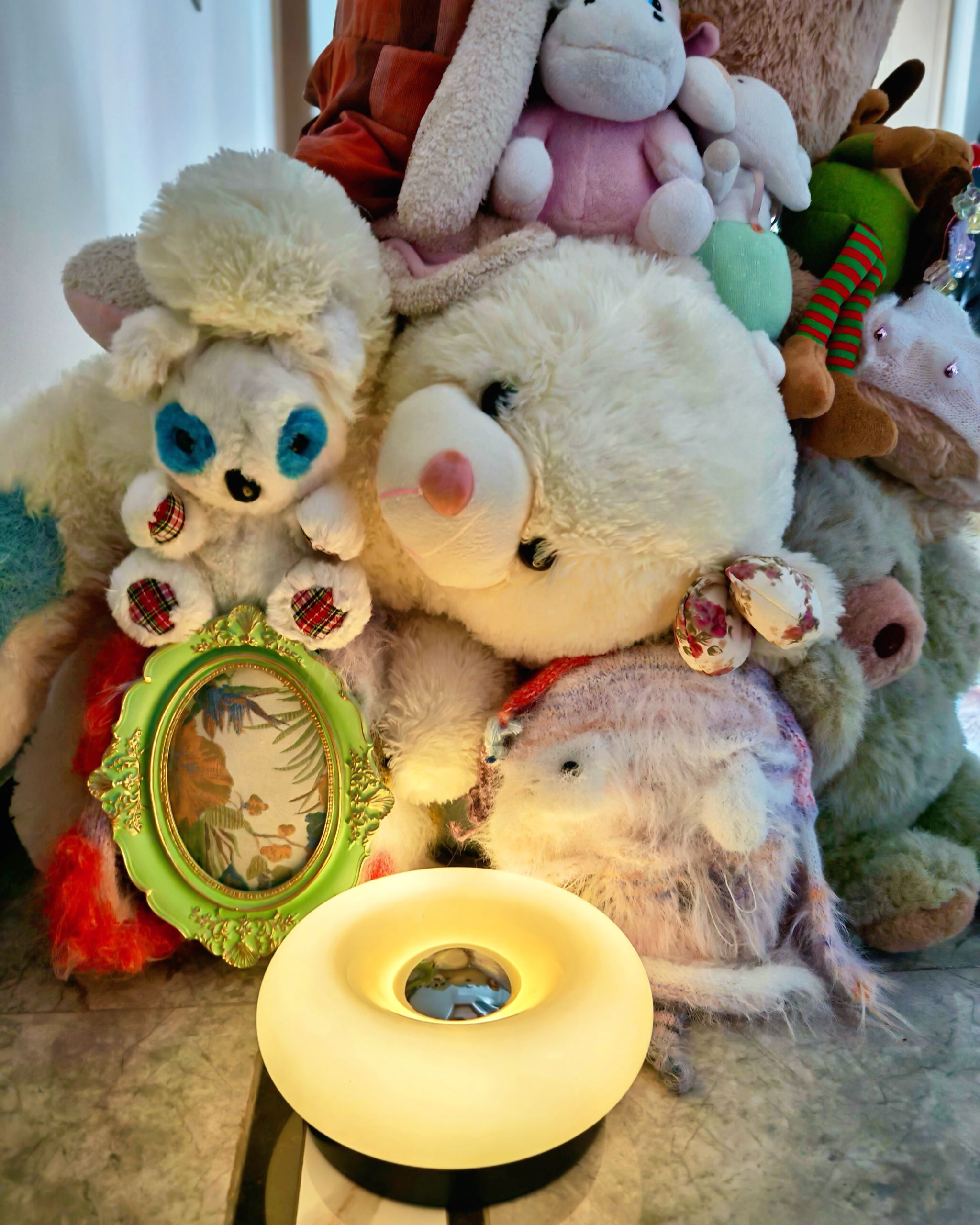 Inspiration comes from my Abbebe - the teddy bear l played with in my childhood. Everyone has their own Abbebe, and even when they grow up, Abbebe becomes an emotional carrier of childhood memories for people. The childhood memories are built through the stacking dolls, and the soft outlines have solidified the Abbebe deep in people's memories, They rely on and support each other, forming a rebirth once again.