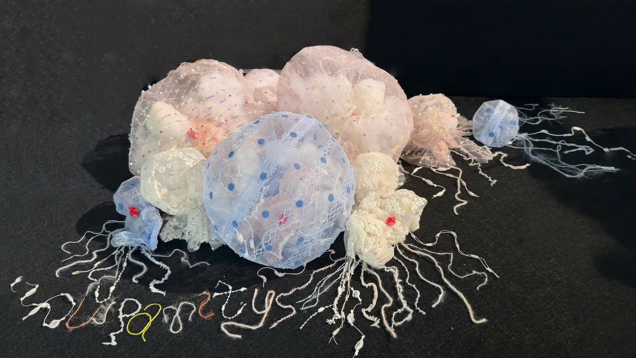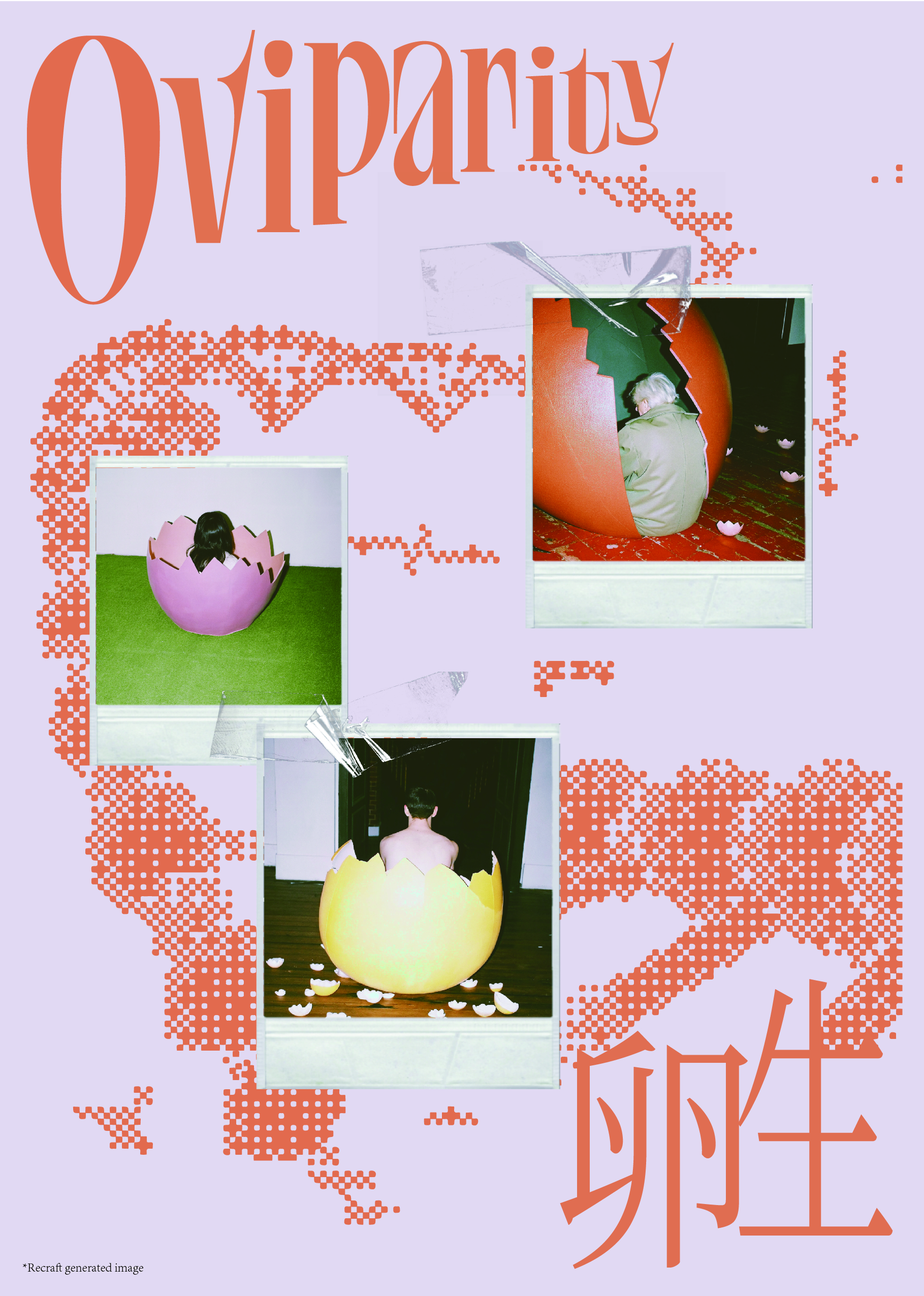 Oviparity employs fabrics made from different materials to simulate a growth form in which humans are oviparous. This work aims to provoke human reflection on different life stages by creating a new mode of biological growth.