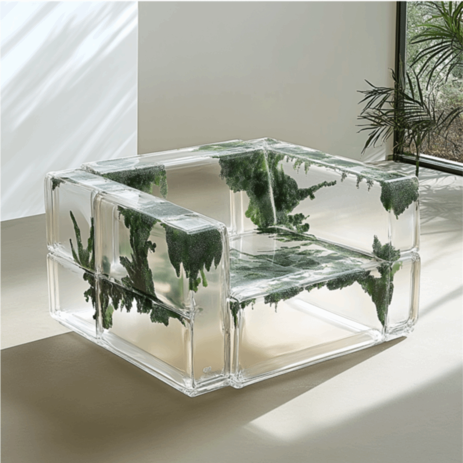 The Feeding constructs a symbiotic system through an acrylic sofa and algae, redefining the complexity of "feeding." By adjusting light, adding nutrients, or physical contact, viewers directly intervene in the algae's survival.