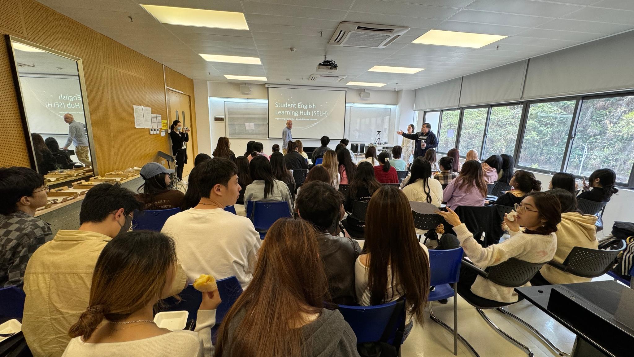 On March 20, 2024, the Music Department organized a workshop in CC320, featuring presentations by Mr. Jonathan James CORBETT and Ms. Elyse Zishan PENG from the English Language Centre (ELC). The event aimed to showcase the extensive support services provided by ELC, introduce the tailored support program for language learning known as the Student English Support Program (SESP), facilitate hands-on experience of SESP activities, and offer valuable writing tips and self-improvement strategies.