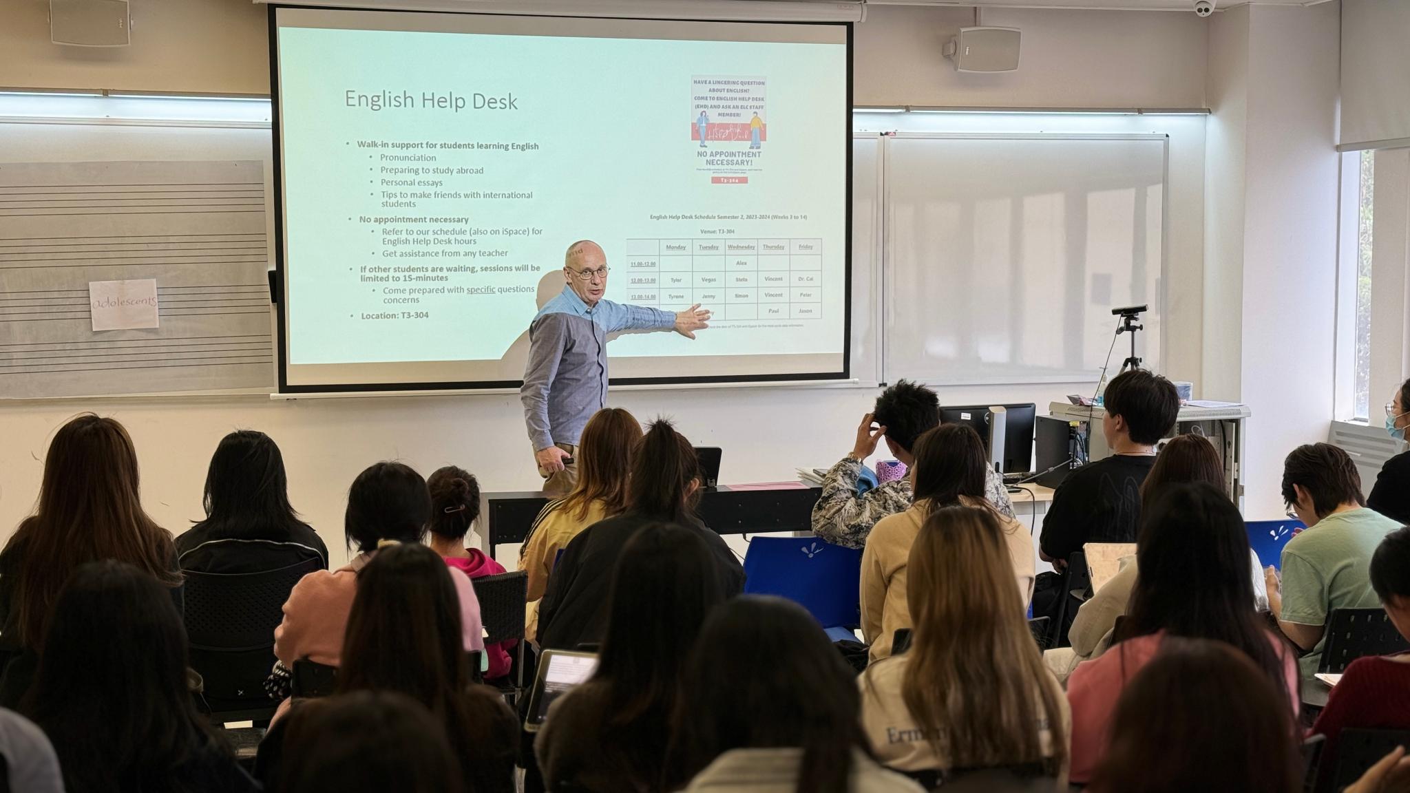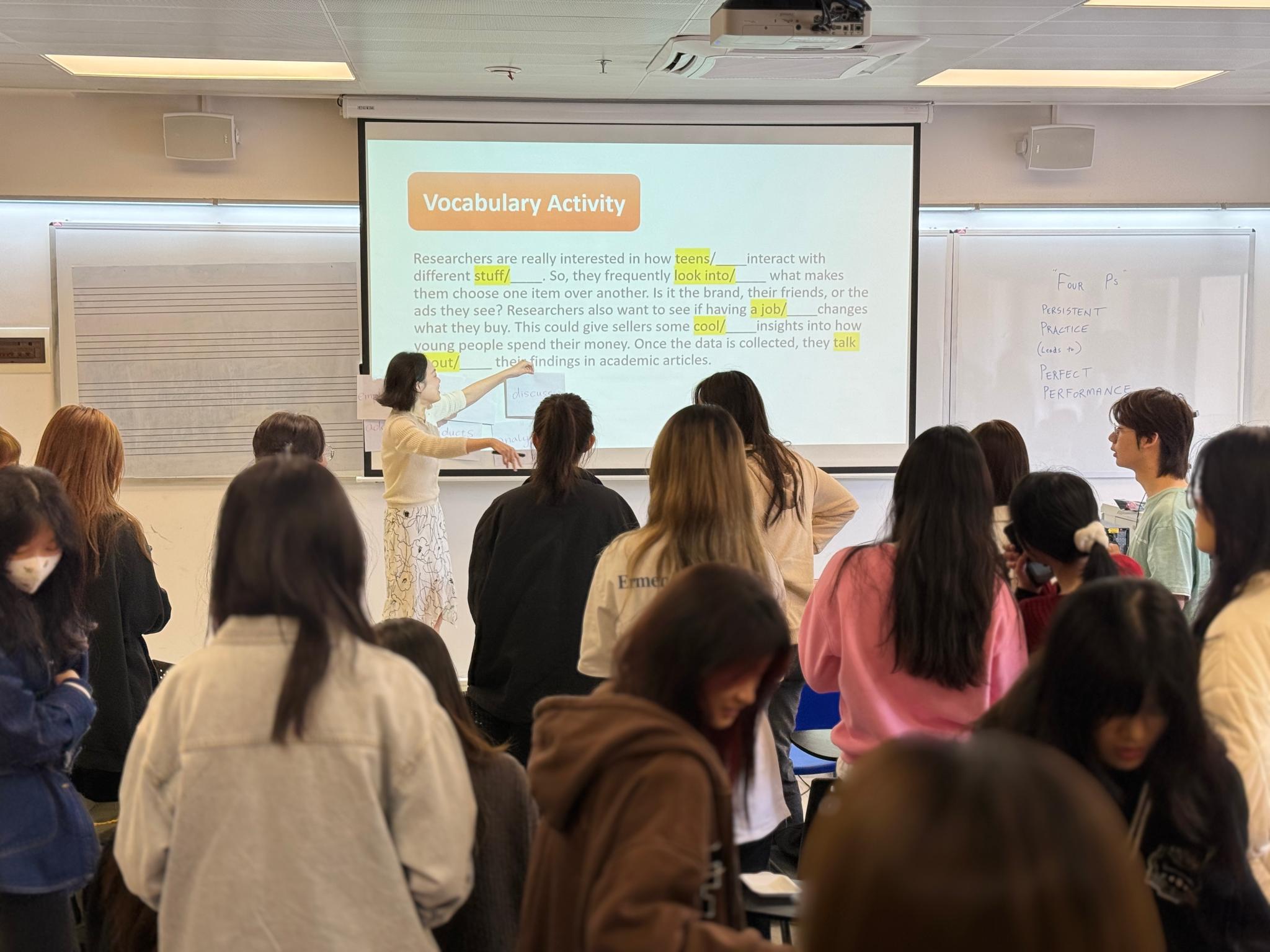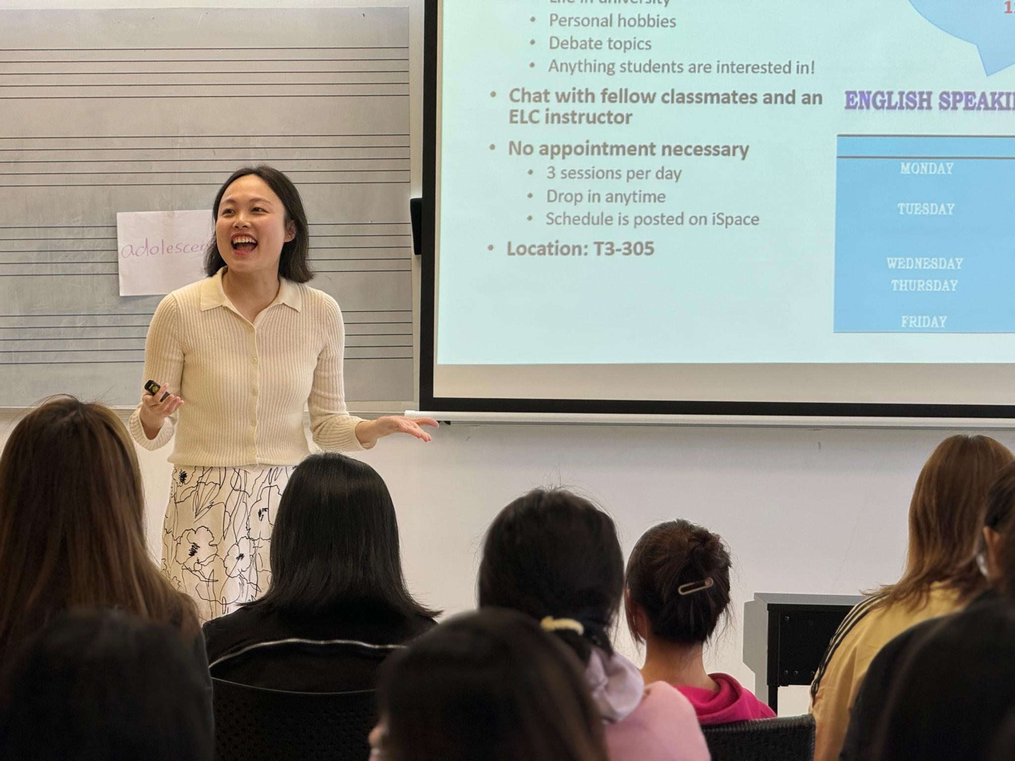Mr. Jonathan James CORBETT delivered a brief introduction to SELH support services, while Ms. Elyse PENG focused on academic writing skills for university-level English, distinguishing between general English writing and academic English writing. In response to student needs, ELC established the Student English Support Program (SESP), aimed at assisting students with lower English proficiency to enhance their language skills and academic confidence. Students participating in this program engage in academic English skill practice in an interactive learning environment and communicate with ELC teachers in groups. The practical activities segment of SESP conducted during the event was particularly lively. Furthermore, ELC introduced a dedicated English-Speaking Corner exclusively for music major students, encouraging them to confidently speak English. Following the conclusion of the event, many students enthusiastically signed up for activities, demonstrating their strong desire to improve their English proficiency.
