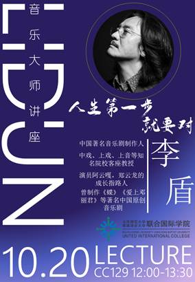 On October 20, 2023, a lecture titled "The Godfather of Chinese Musical Theater Presents" presented by Maestro Li DUN was held in CC-129 Lecture Hall at UIC, organized by the Music Performance Program and the School of Culture and Creativity. Mr. Li Dun is a celebrated musical producer in China, widely known as "The Godfather of Musical Theatre.” He has produced a number of highly acclaimed Chinese original musicals, such as "Butterfly," "Falling in Love with Teresa Deng," "Love Me Again, Mom," and "Ah, Gulang,” among others. He holds honorary professor positions at renowned art institutions in China and abroad, such as China Central Theatre Academy, Shanghai Theatre Academy, Shanghai Conservatory of Music, Beijing Dance Academy, and Seoul National University.