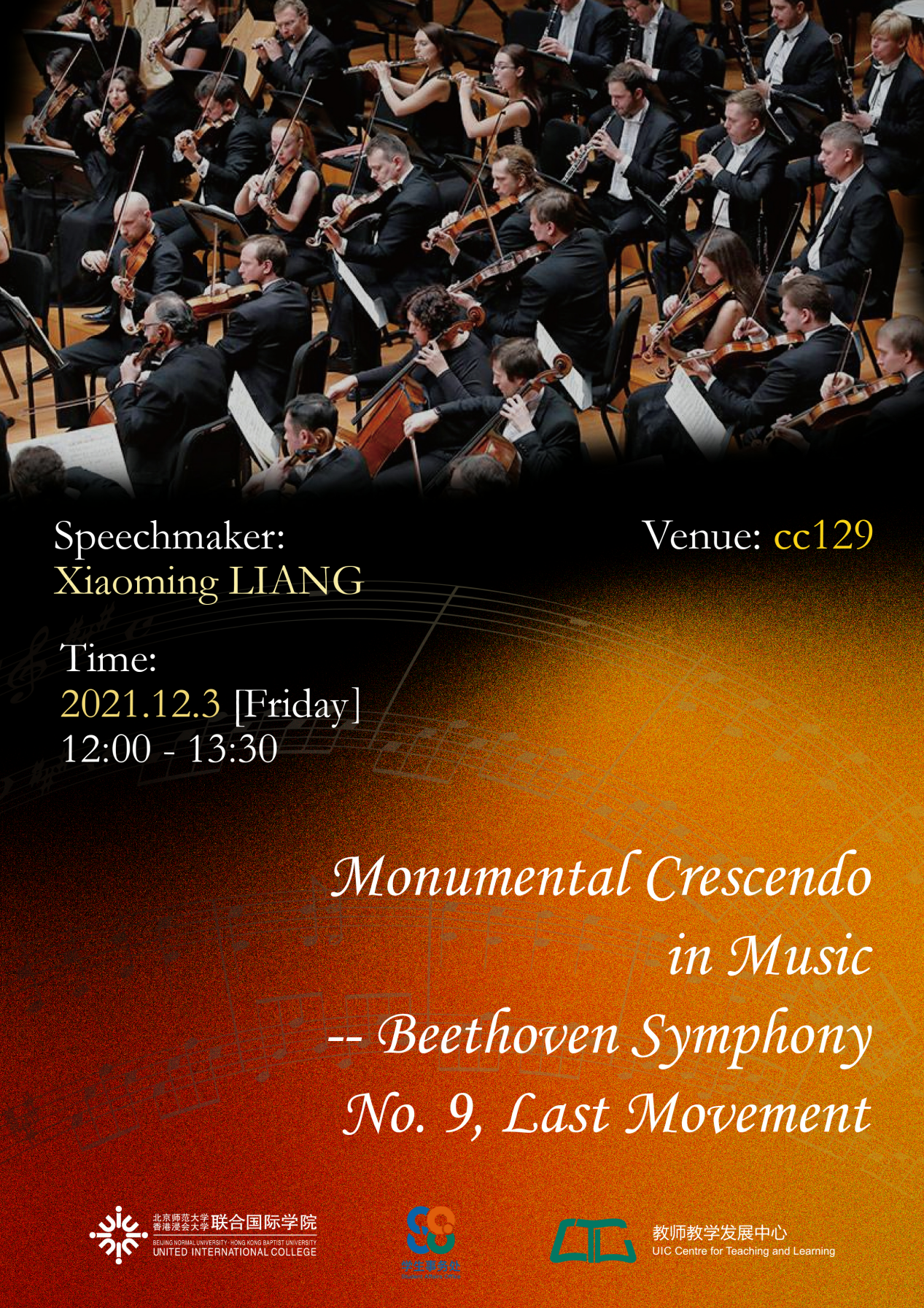 On December 3, the Music performance programme was honored to invite Professor Xiaoming LIANG to give a lecture. The lecture described Beethoven's musical life from the musical structure and composition technique of the fourth movement and the musical philosophy behind it. This lecture not only allowed the listeners to appreciate the unique charm of Beethoven’s Ninth Symphony, but also gave the students a deeper understanding of the music itself.