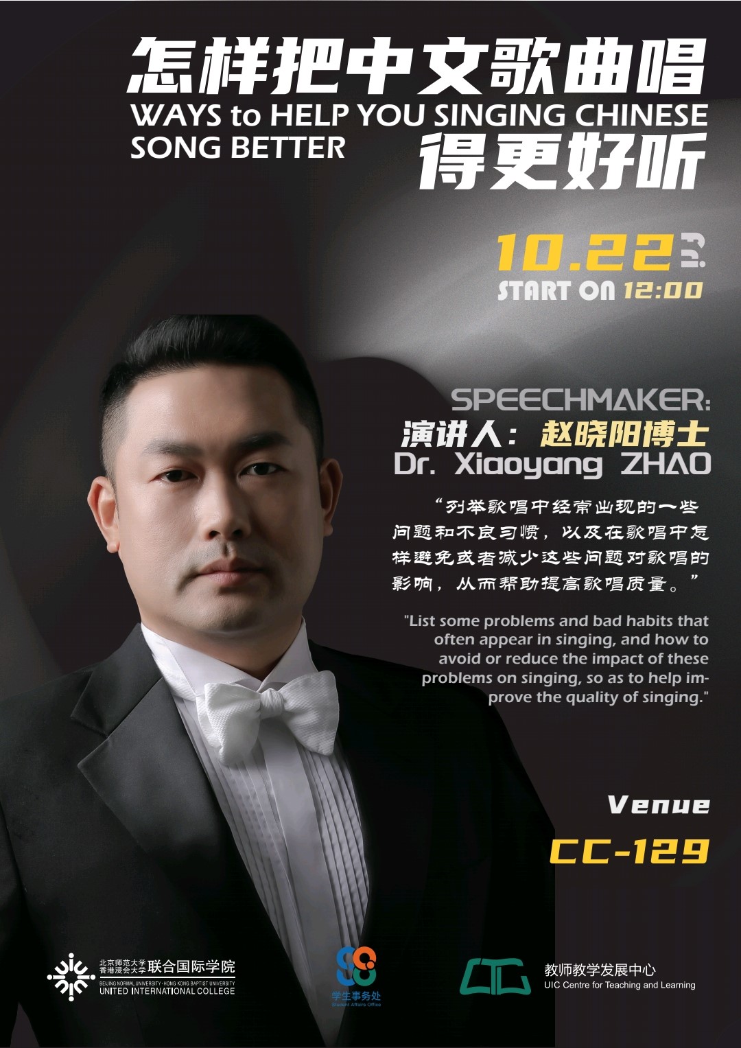 Bio of the Speaker: Lyrical baritone singer, DMA. in vocal performance, graduate student tutor in Beijing Normal University. Studied at Northeast Normal University School of Music, University of London Music Department, San Diego State University School of Music, and Shenandoah Conservatory of Music; successively received a bachelor's degree in musicology, a master's degree in vocal performance, a diploma in opera singing artist, and a doctorate in vocal performance . He has won awards in the San Diego National Vocal Teachers Association Young Singer Competition, Winchester International Music Festival Young Singer Competition, and Asian Music Festival Vocal Competition. And successfully held solo concerts and vocal master class lectures in China, Taiwan, Macau, the United Kingdom, the United States and other places. In 2007, the solo concert at San Diego State University was named one of the best concerts in American music colleges by the "Classical Singer" magazine. He has been employed at the San Diego Opera , San Diego Lyric Opera , and the Belcantaki Opera in Washington to perform "Aida", "Tanghauser", "The Wedding of Figaro", "The Barber of Seville", "Hamlet", etc. Opera and play the main role. He has also held several public welfare vocal lectures, such as the "Music Masters Under the Grassroots" series of lectures, "A Day to Art" vocal salon series of lectures, "Dialogue with World Musicians-Public Welfare Lectures Against the New Crown Epidemic" and so on.
