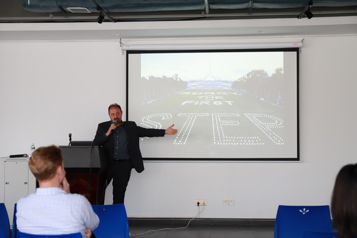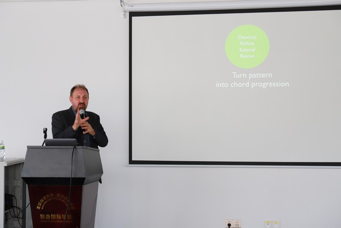 Dr Davidson is a composer who has travelled globally for various music festivals and events. He began his talk by playing a clip of music he composed, titled "Lost in Light," before sharing a more contemporary style he composed where he decided to mix Sichuan Opera with jazz music. After showing some of his past successful works, Dr Davidson began to talk about the creative process, which he has based on his interviews with many composers and his own experience composing music.
