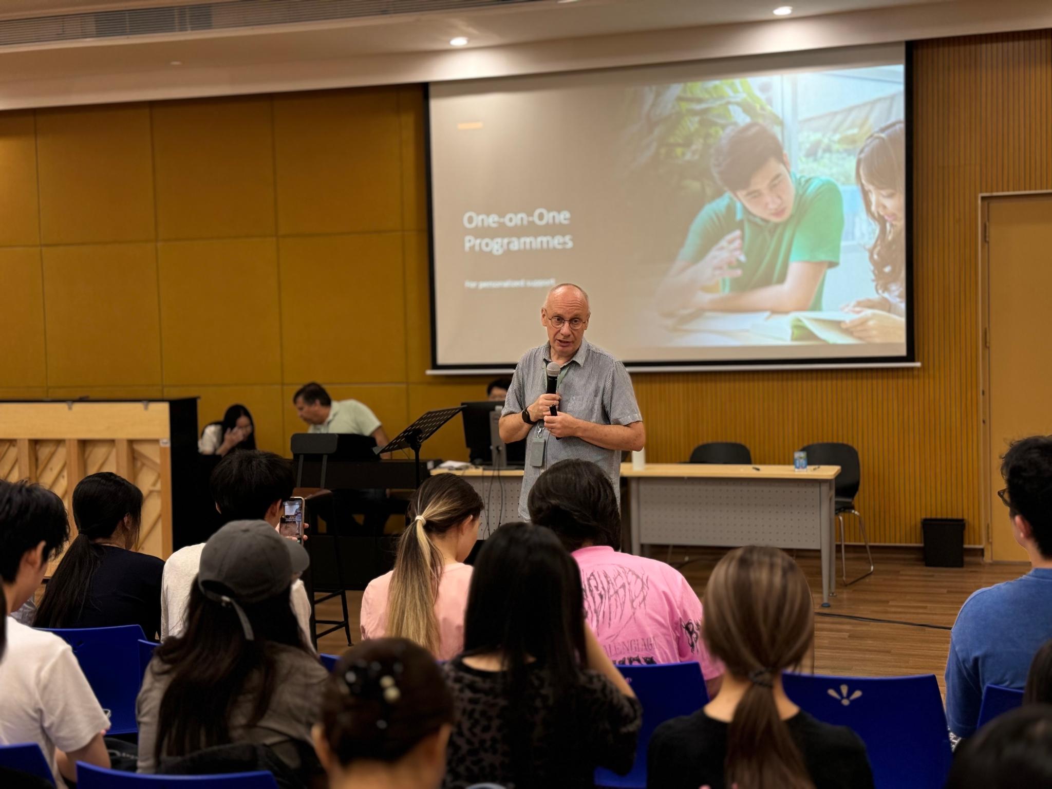 In addition to the welcoming remarks from the Music Department, students were introduced to the English Learning Centre (ELC). Mr. Jonathan James CORBETT, Acting Head of ELC, and Ms. Elyse Peng, Junior English Language Instructor, provided valuable insights into utilizing campus resources to enhance English language skills. This introduction encouraged students to fully integrate into the campus community and make the most of their academic journey.
