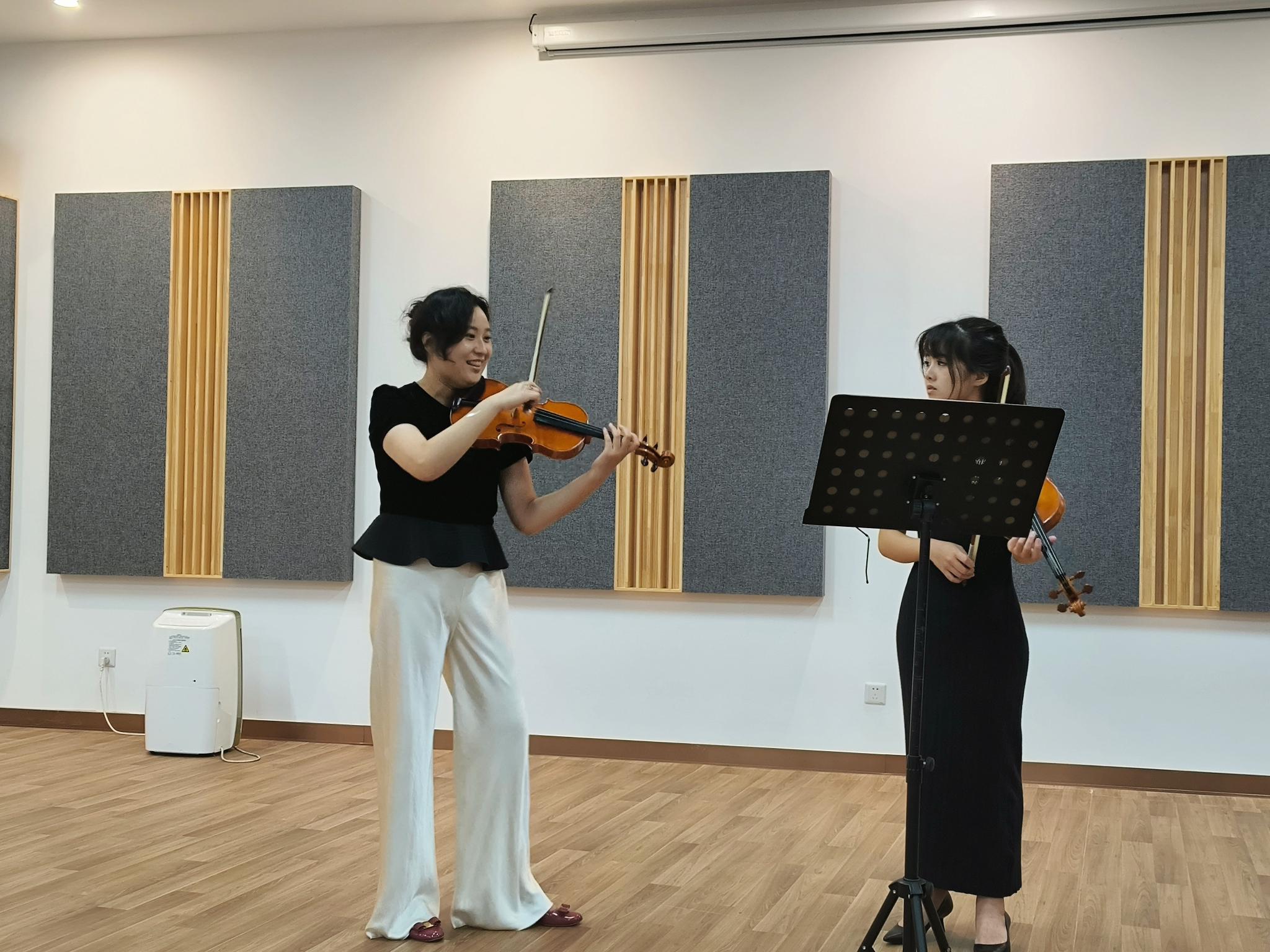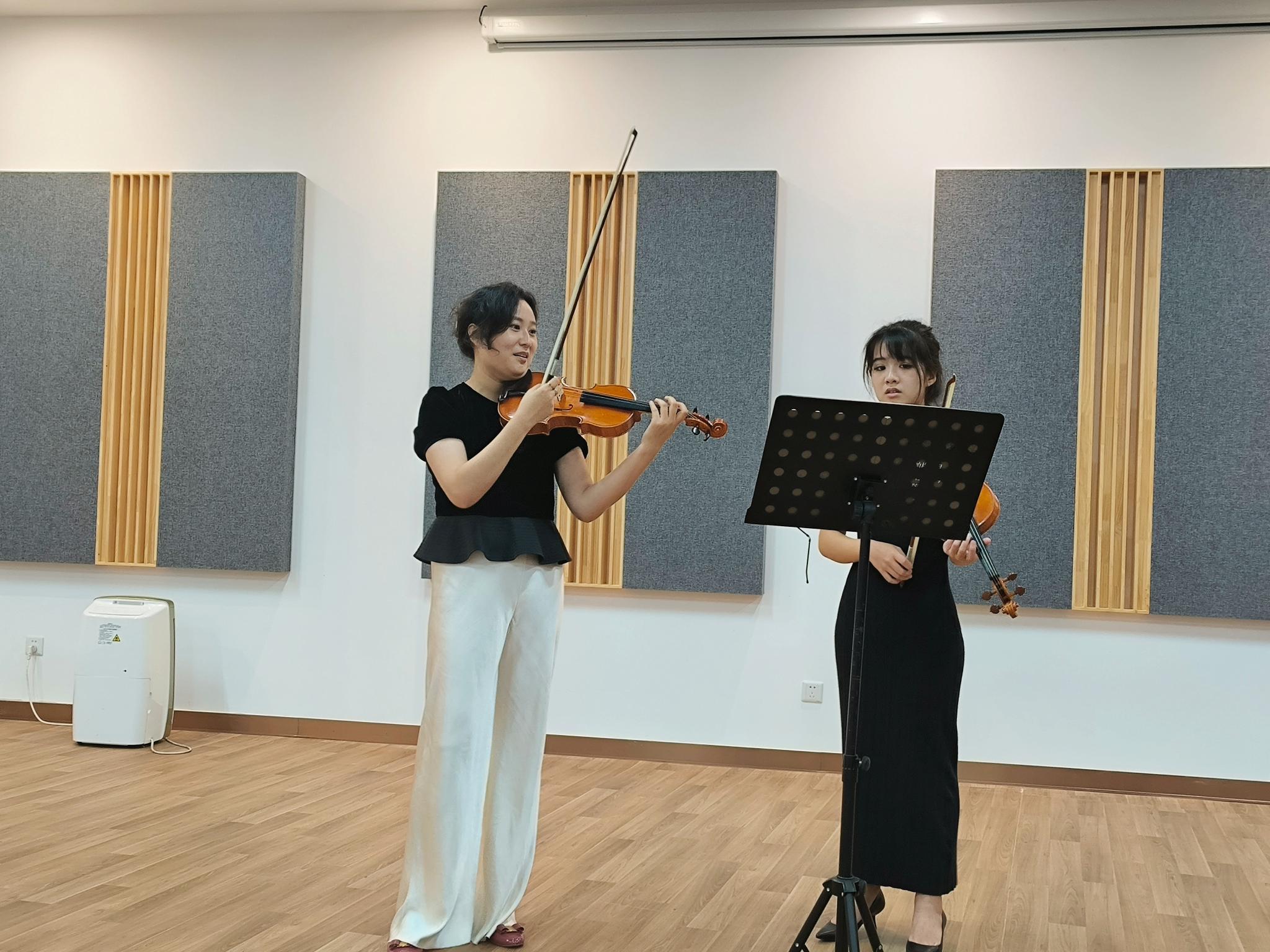 The event featured violinist and educator Lingyi Kong, whose impressive career and unique interpretative skills provided a fresh, inspiring perspective on the iconic works of Bach. The first half of the session was an engaging lecture where Kong shared her deep insights into Bach’s violin partitas, unraveling the intricate layers of the music and offering students a rare opportunity to understand the nuances of interpretation from a master violinist.
