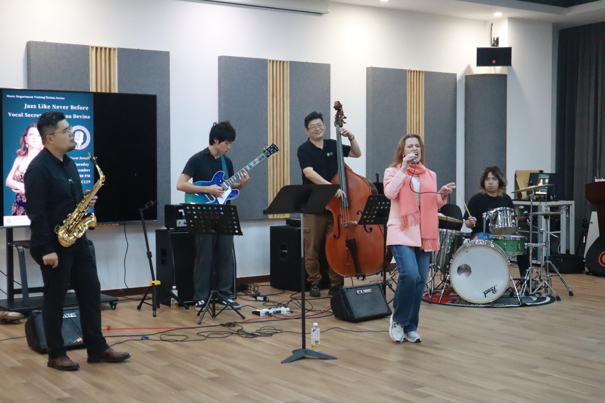 On November 26, the UIC Music Department hosted an engaging Jazz Singing Workshop in classroom CC129. The event featured Anna Devina, a versatile vocalist renowned for her expertise in jazz, whose vibrant teaching style captivated the audience and delivered a unique musical experience.
