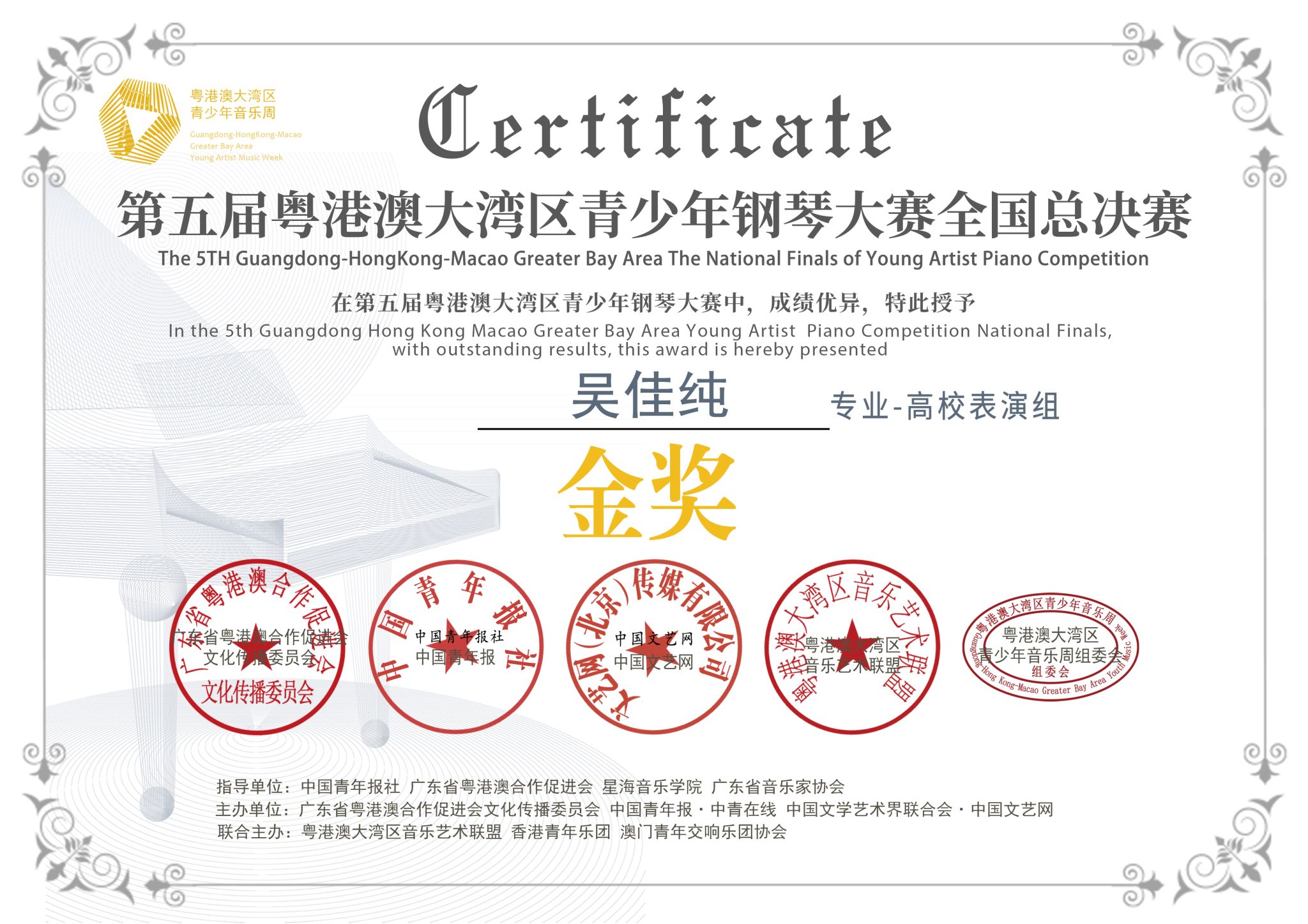 Wu Jiachun, a 2023 student of the UIC Music Department, has won the Gold Medal in the Professional Group of the Guangdong-Hong Kong-Macau Greater Bay Area Youth Piano Competition (under the guidance of Dr. Wei Jiaying).
