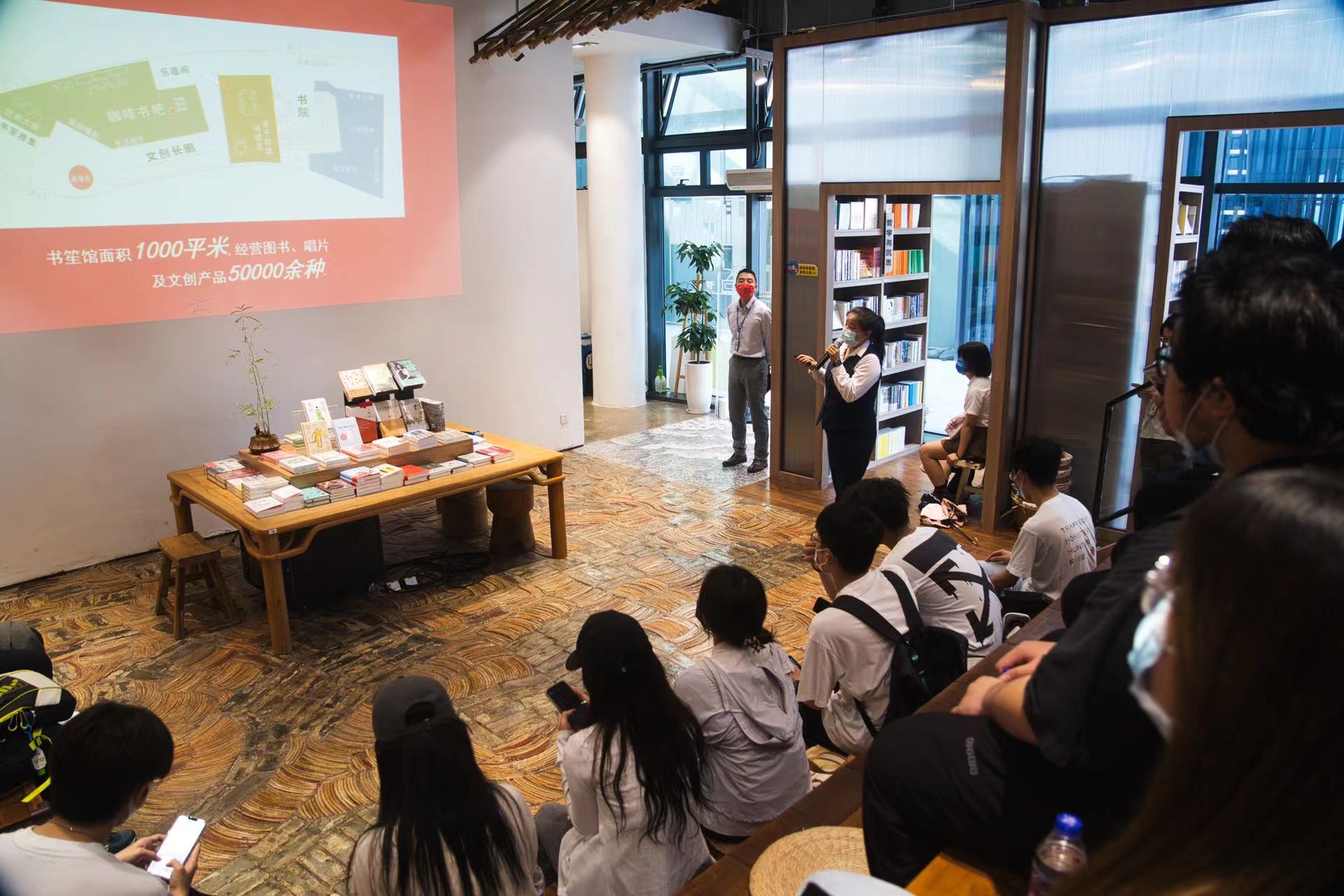 在商业发展总监黄主任的带领下,同学们参观了海韵城的旅游信息咨询中心、书生书店等文化创意中心。