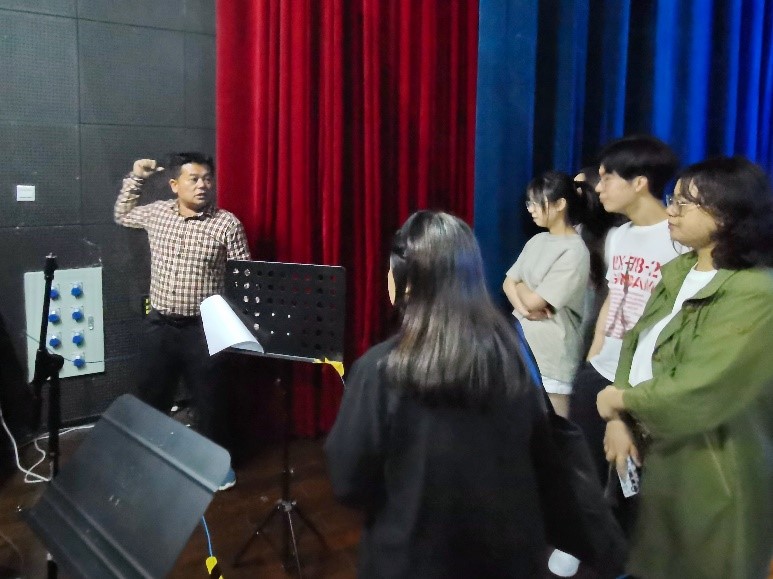 吴老师首先向学生介绍了大学会堂里的全部视听设备,从高清投影仪到先进的音响系统,从舞台设备到观众设施等,并分享了举办演出的工作流程经验。吴老师用生动的讲解和具体的案例,让大家在愉快的氛围中快速了解到不同设备对应的功能和特点。