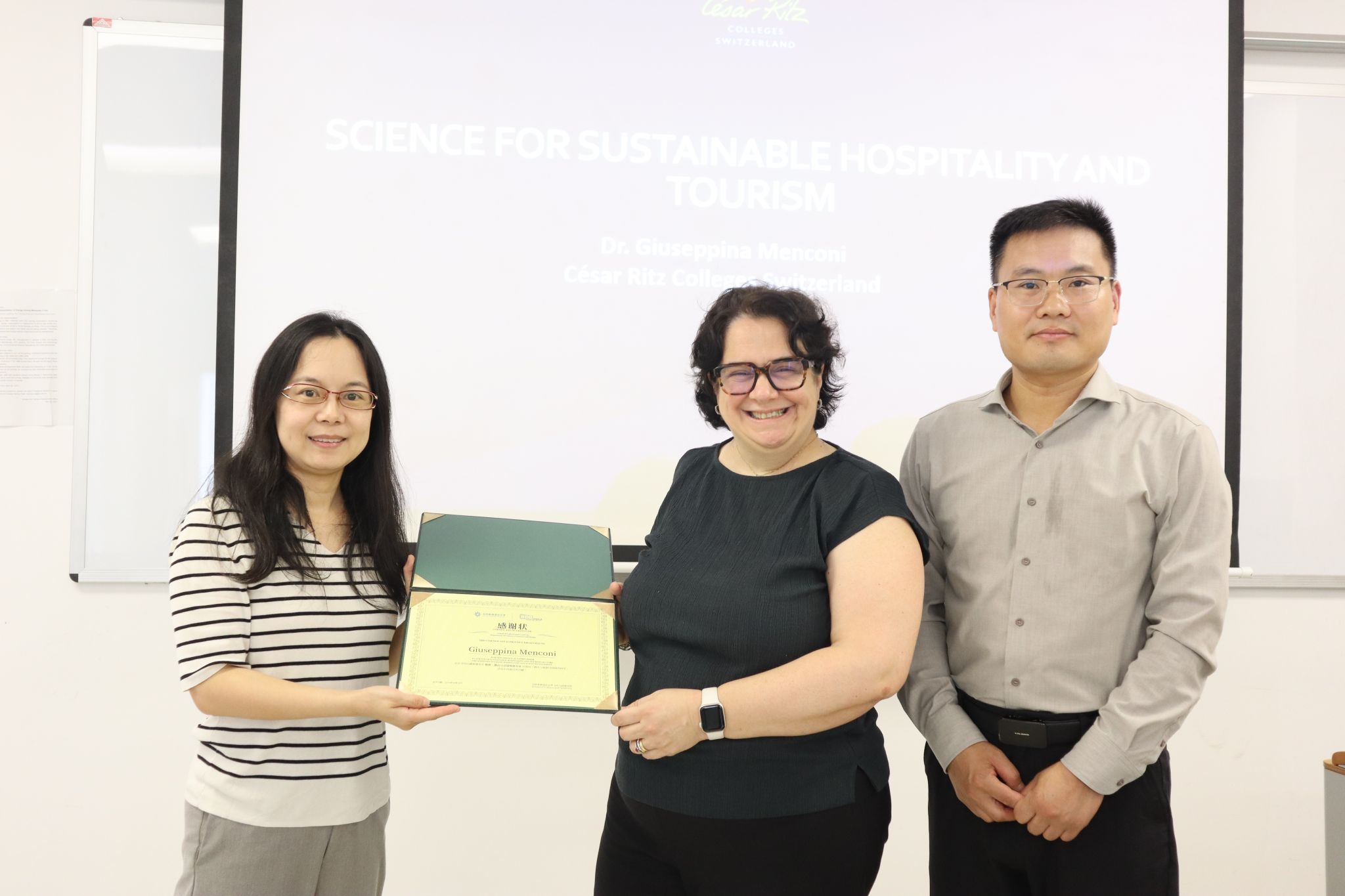 On April 18, 2025, the Tourism, Hospitality and Event Management Programme of the Department of Culture, Creativity and Design, School of Culture and Creativity, jointly with SEG Swiss Education Group, invited Prof. Giuseppina Menconi from César Ritz Colleges Switzerland to give a lecture on " Science for Sustainable Hospitality and Tourism " in CC403.